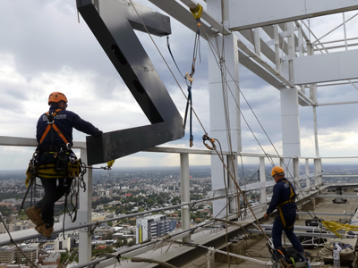 Instalação profissional de painéis, banners e formatos especiais em altura